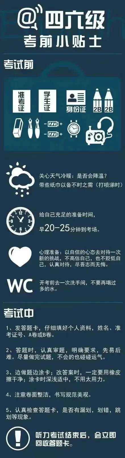 经常在以下4处出题:开头、学习集中处(双方交谈最热烈处)、时间数字处、对整个对话的理解上出题。因此,听前预测和边听边做笔记就显得格外重要。