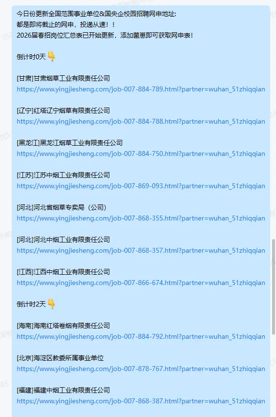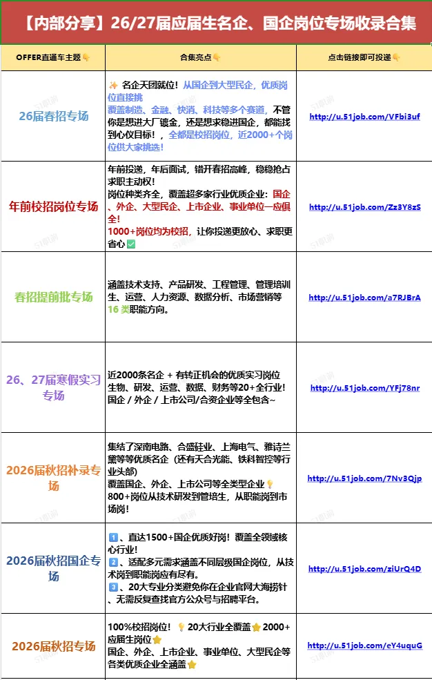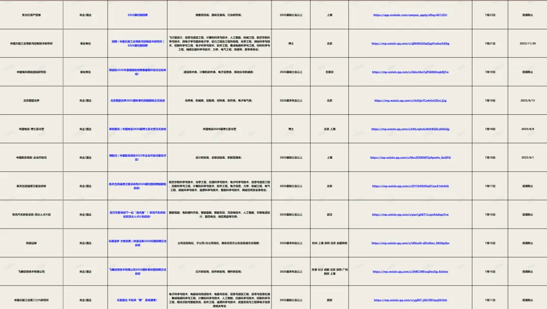 我们会整理网申截止时间、招聘对象、专业要求、工作地点。大家不用再到处刷网站、蹲公告,重要信息不会错过。