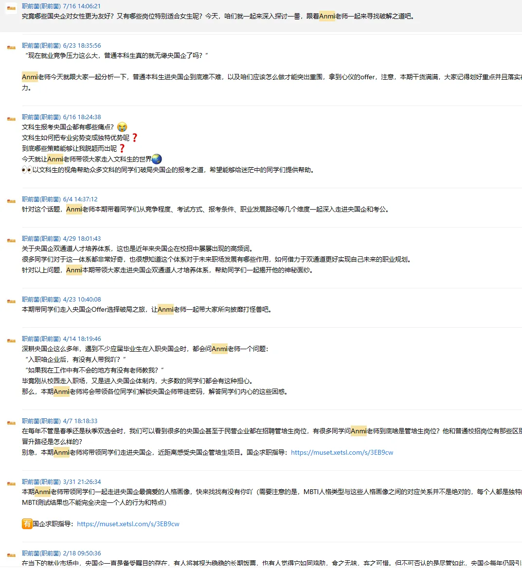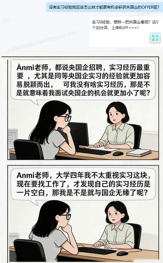 比如: 大家在准备过程中会常常陷入信息差、流程不清晰、准备无方向的困境。 ![]() 有人不知道哪些央国企正在校招、哪些岗位对应届生开放。 有人不清楚网申时间、笔试内容、面试形式。 有人对着复杂的报名系统无从下手。 有人准备了简历却不知道是否符合央国企偏好。 有人想找同届伙伴交流,却只能独自摸索。 ![]() |
