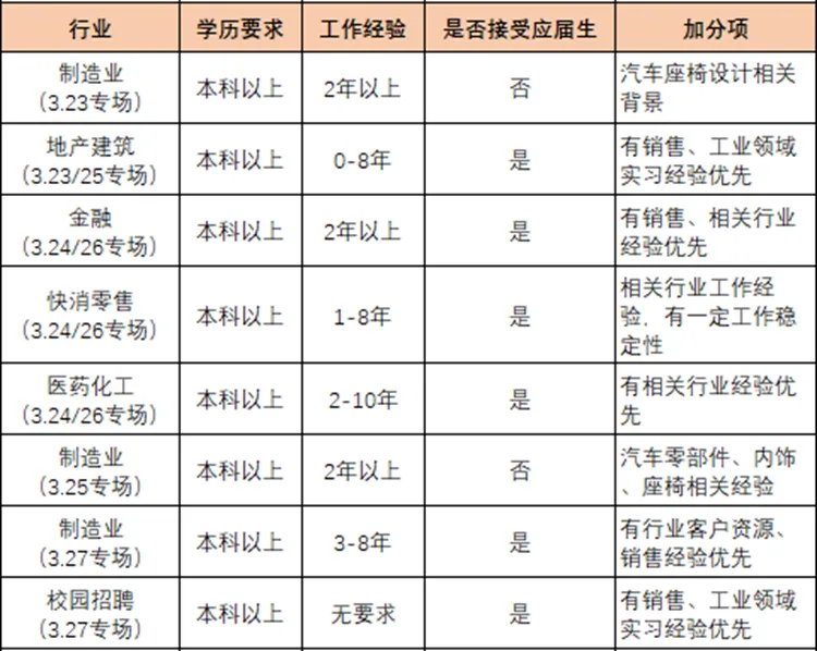 部分行业接受应届生,部分需要一定经验,请对照上表确认