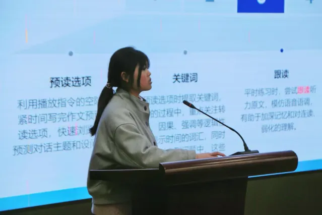 2023级农经一班钟文丽聚焦听力与阅读,剖析薄弱根源并分享“听读结合”训练、答题复盘及单词积累方法。