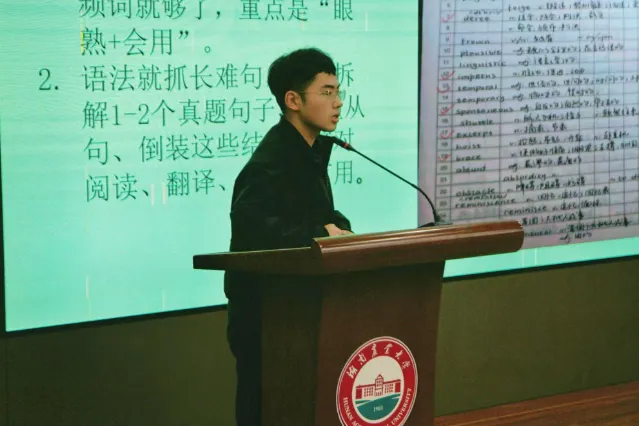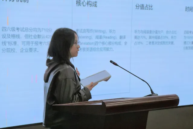 2022级金融一班李睿凭借四六级及考研英语高分经验,分享听力、阅读应试技巧与写作翻译积累方法,侧重实战应用。