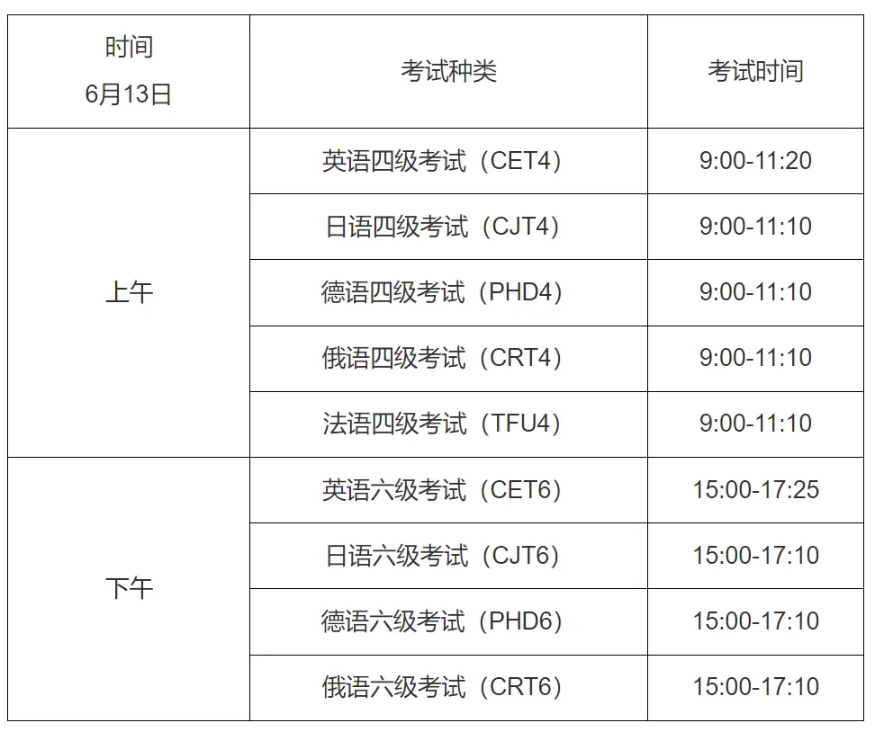 2026年上半年全国大学英语四、六级考试笔试及口试将分别于6月13日和5月23日至5月24日举行。