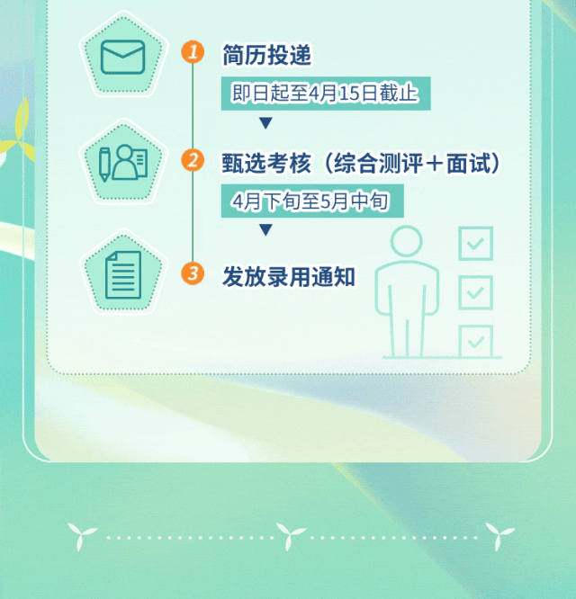 ✅ 招聘流程:网申→简历筛选→4月上旬笔试(分批进行)→4-5月面试→背景调查→体检→offer发放,全程无报名费,谨防诈骗。