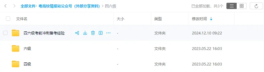 ✅ 关注「粤高校情报站」公众号,在聊天框回复「四六级学习」可免费获取大学英语四六级考试相关资料。