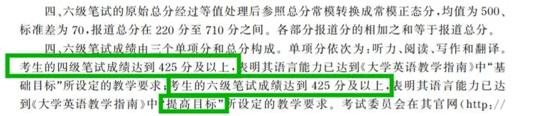 所以,一般来说,作为社会默认的标准和各学校自行规定的合格线往年都是425分。