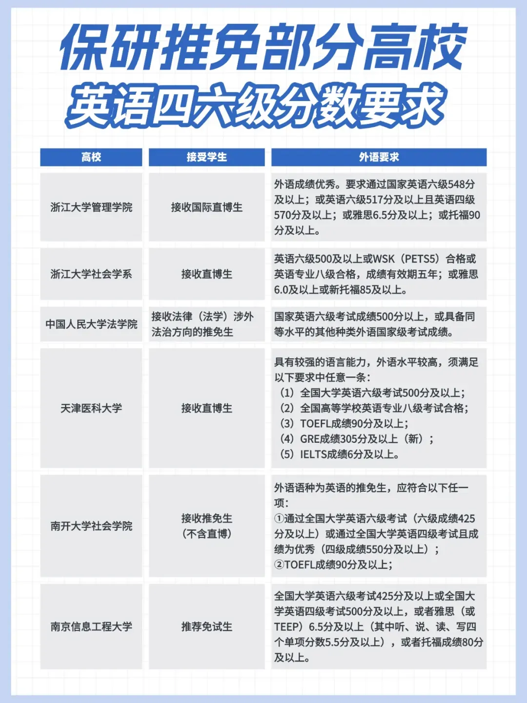 (1)过线即禁。比如东华理工大学等高校规定,只要四六级分数在425分及以上就不能报考。