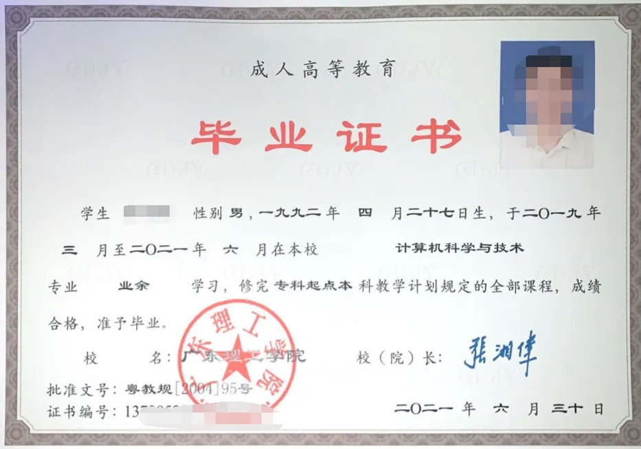 广东理工学院成人高等教育毕业证