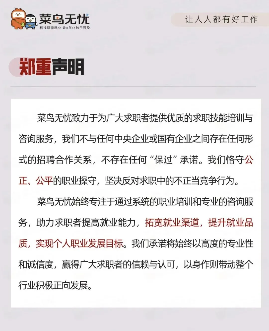 - 典型套路:承诺“不成功全额退款”,签订模糊的“就业服务合同”,合同中不写明具体岗位、录用时间,暗藏“政策变化不予退款”“个人原因放弃不退费”等霸王条款;部分骗子还会伪造面试通知、录用offer,模拟虚假面试流程,营造“正规办理”的假象,最后以“竞争激烈、需要加价”“名额已满”等理由拖延,最终失联跑路。