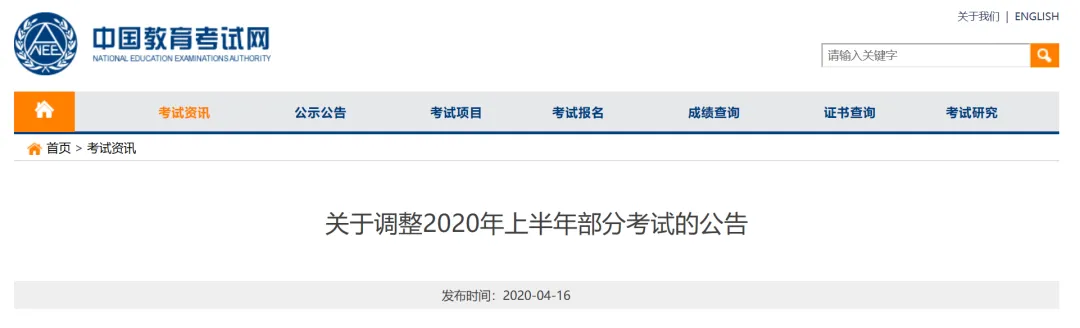 为落实国家关于新冠肺炎疫情防控工作部署及教育部相关通知要求,切实保障考生、考试工作人员的身体健康和生命安全,经研究决定,取消原定于2020年上半年举行的以下考试项目: