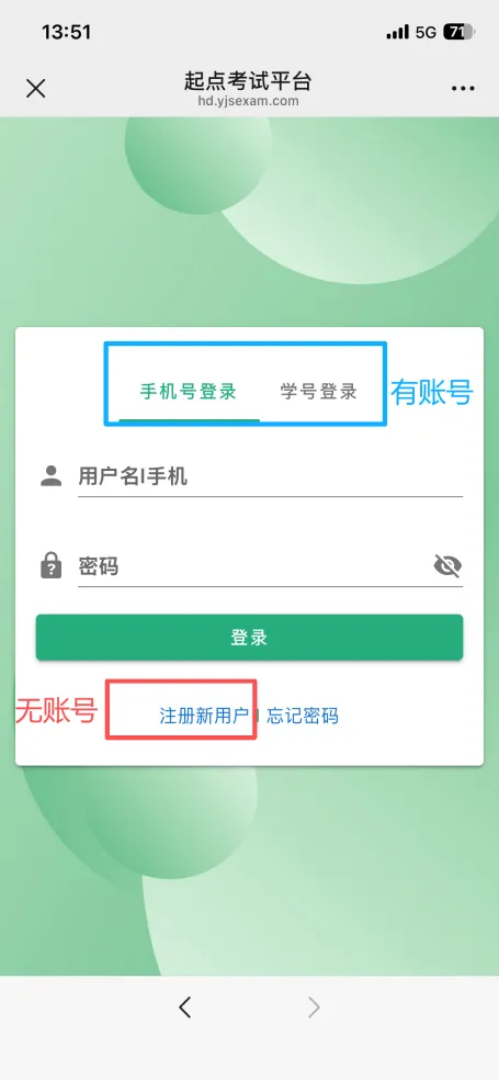 三种方式任选其一,已注册过起点考试网、起点考研网等相关账号或往届参赛的同学,可直接用原账号登录。