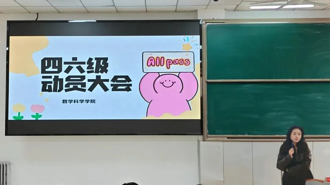 大会伊始,闫炎结合我院学生的专业学习特点,向同学们强调,英语四六级考试不仅是提升个人语言应用能力的重要契机,更是完善综合素养、为未来升学深造与科研学术交流筑牢语言基础的关键环节。同时,她鼓励同学们以严谨的治学态度投入备考,主动克服畏难情绪,结合自身情况制定科学系统的备考计划,以全力以赴的姿态迎接考试挑战。大会最后,闫炎着重明确了备考期间的纪律要求,也强调了身心健康的重要性,提醒同学们合理规划作息时间,保持积极良好的备考心态,避免因过度焦虑影响复习效率。参会同学纷纷表示,此次动员大会既收获了实用的复习方法,又坚定了顺利通过四六级考试的信心与决心。