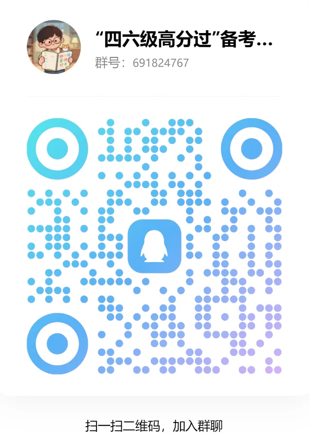 四六级备考之路,坚持与陪伴缺一不可。欢迎各位同学尽快扫码加入备考打卡QQ群,以积分打卡为支点,撬动每日进步。愿每一次单词的背诵、每一套真题的练习,都成为你迈向高分的坚实阶梯。期待在六月考场上,你能以充分的准备从容应考,斩获理想成绩!