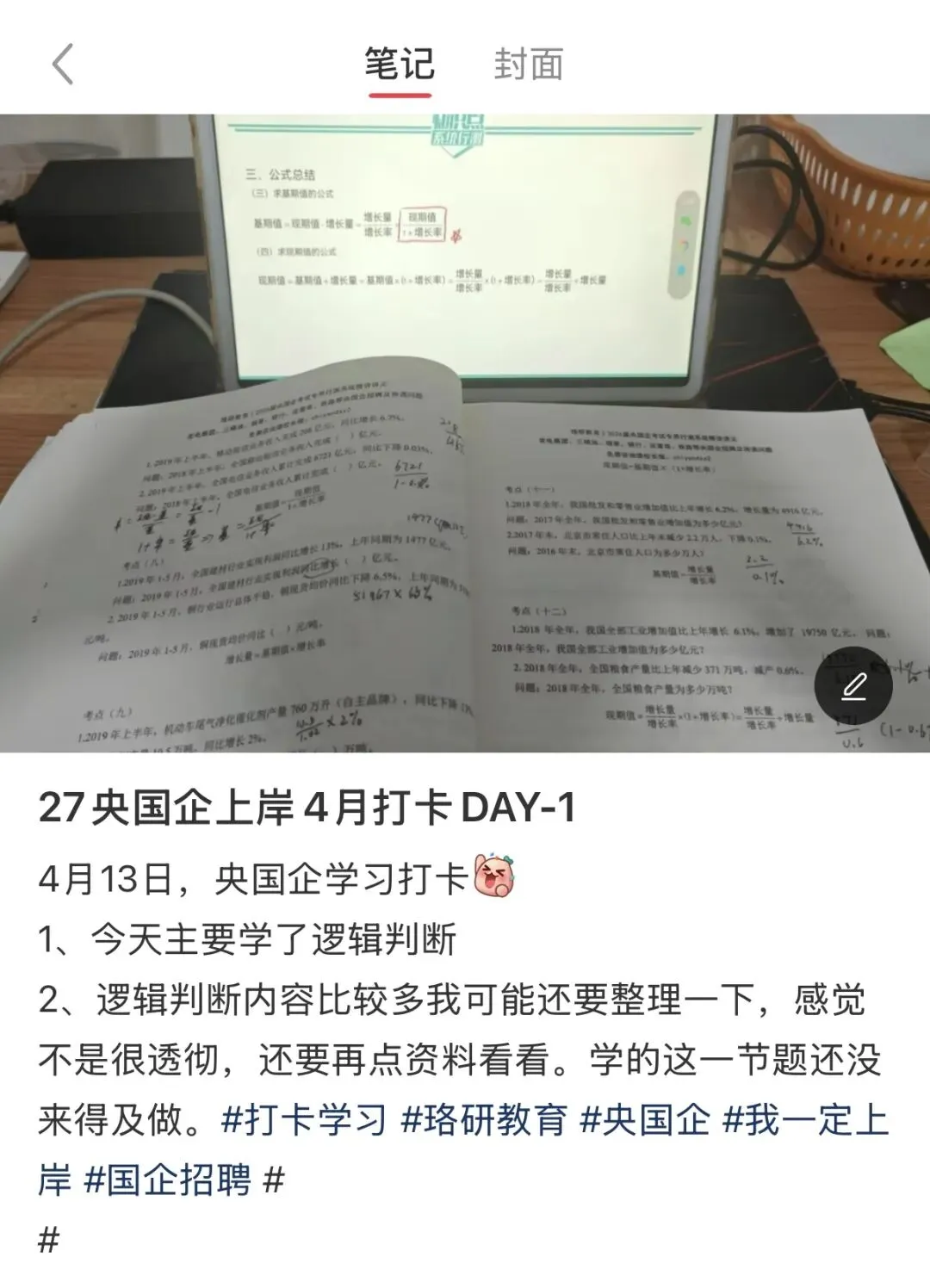 正文:2张及以上学习照片(珞研央国企学习资料) + 15字及以上的文字介绍 + #央国企 + #央国企考试 + #珞研教育