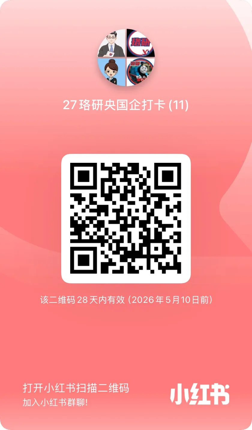 在"知盐德校长"小红书账号对应的打卡活动笔记下面评论“央国企上岸”,在小红书平台成功打卡一次,并进入下方小红书群!进群后看群公告填写链接(统计小红书号,以便核算积分,未填写链接者视为打卡无效)