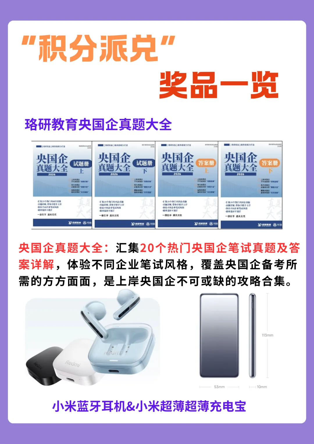 ②活动结束后,从积分≥15的同学中抽取1名同学,解锁小米超薄充电宝奖励。
