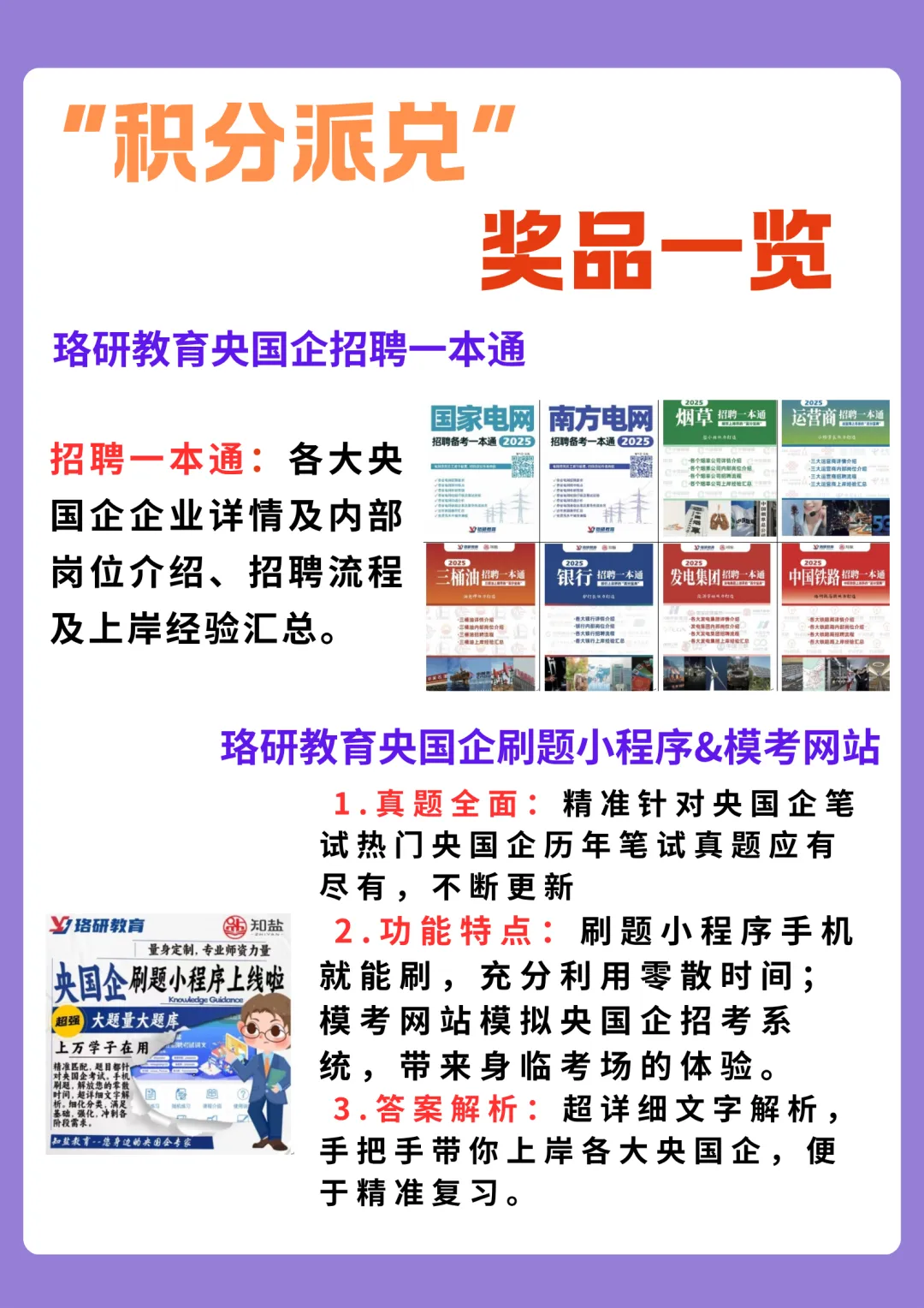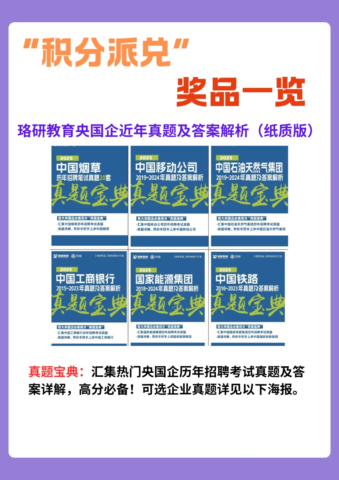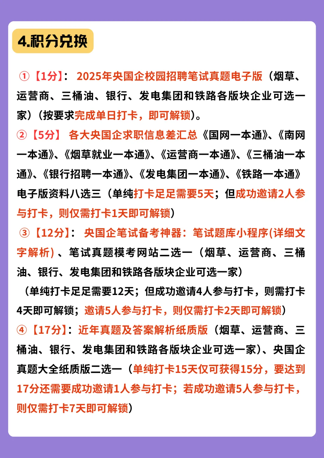 ①【1分】:2025年央国企校园招聘笔试真题电子版(烟草、运营商、三桶油、银行、发电集团和铁路各版块企业可选一家)(按要求完成单日打卡,即可解锁)。