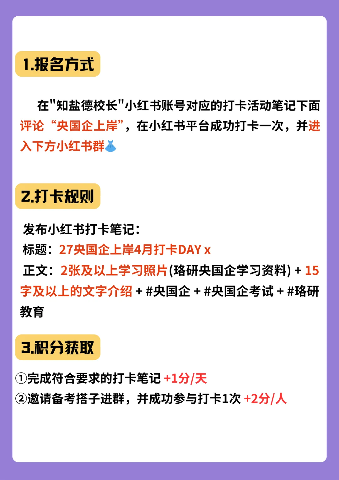 1.活动期间评论区留言“央国企上岸”后发布打卡笔记才算有效;